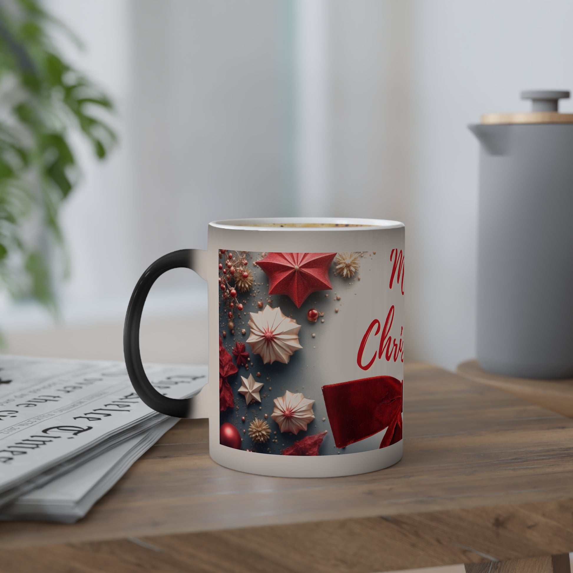 Bring cozy, laughter-filled evenings to the table with this 11oz color-changing mug that reveals a festive family-themed design as it warms. Pour a steaming cocoa or mulled cider and watch the hidden Christmas motif bloom across a glossy ceramic surface — a small, joyful spectacle that turns ordinary sips into shared moments. The mug sits comfortably by hand with its black C-shaped handle and contrasts with a white interior that brightens the revealed image. Keep it close during holiday gatherings and quiet winter mornings to spark conversation, memory, and that familiar warm glow of home.