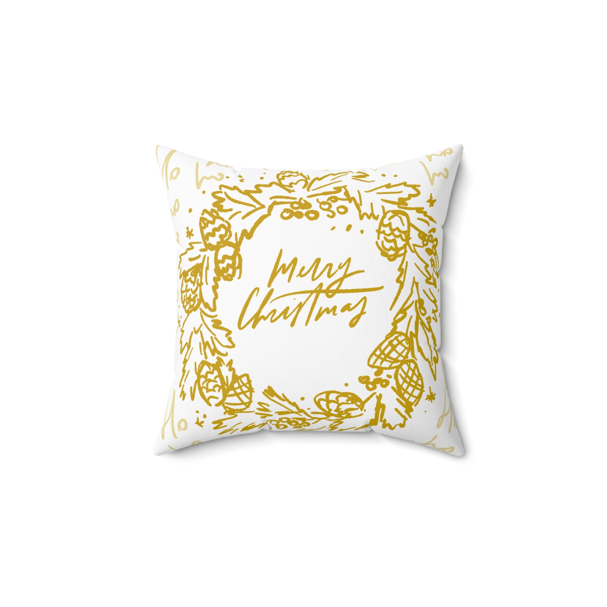 Merry Christmas Gold Wreath Pillow — Festive Decorative Throw Pillow