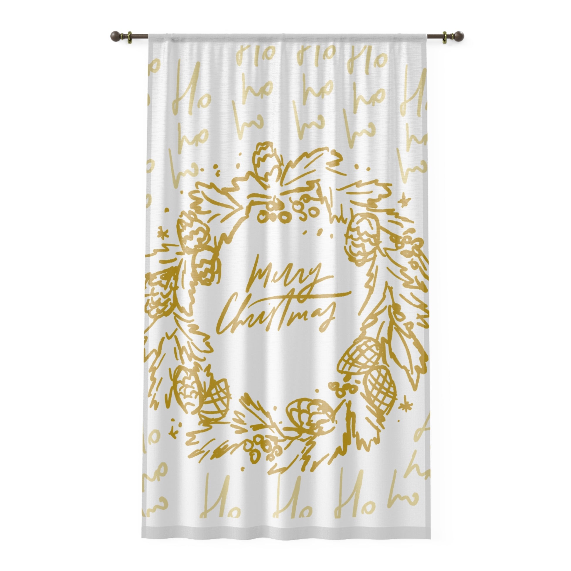 Merry Christmas Window Curtain — Golden Wreath Holiday Décor